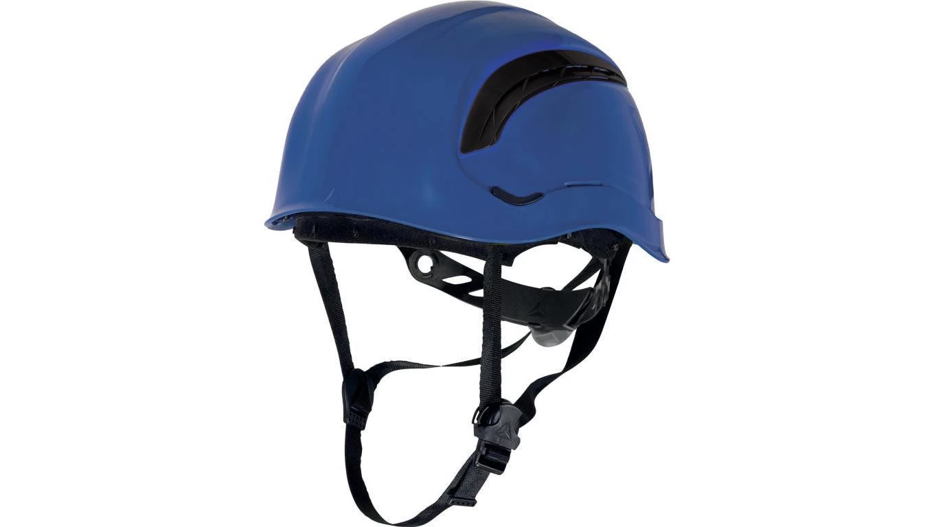 Hełm ochronny z abs, w stylu górskim, wentylowany, z regulacją rotor, pasek podbródkowy z 3 punktami mocowania, mm*, +50°c/-20°c* niebieski regulowany o numerze katalogowym GRAWIBLFL w kategorii Hełmy budowlane, Ochrona głowy. Produkt wyprodukowany przez markę DELTA PLUS.