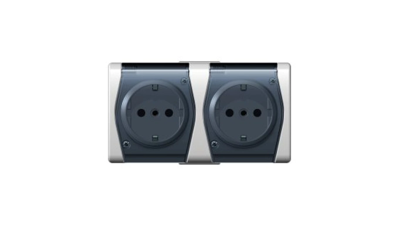 HYDRO Gniazdo hermetyczne podwójne z/u IP44 z klapką klinkier 122236
