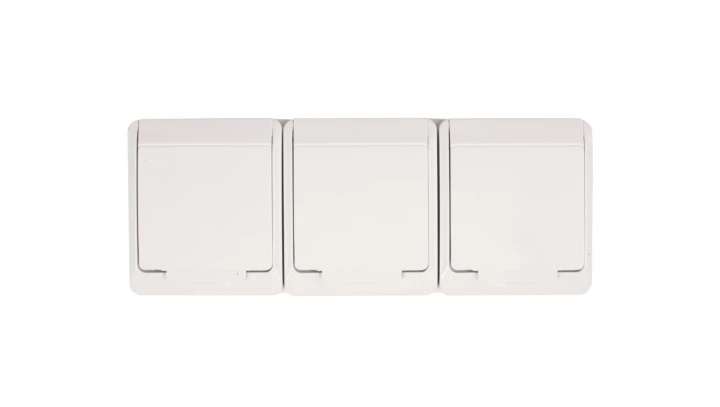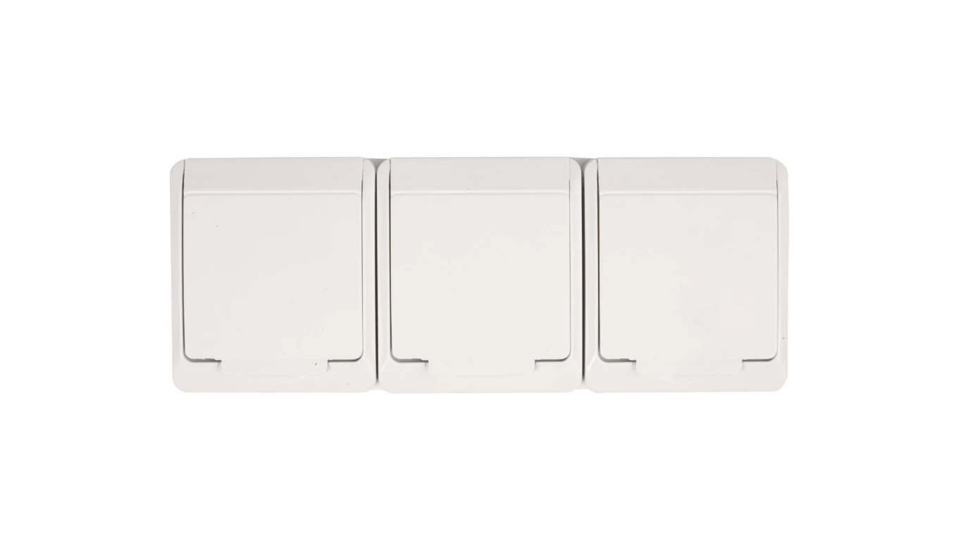 Gniazdo 3-krotne, natynkowe, IP44, białe, HERMES o numerze katalogowym 0323-02 w kategorii Gniazda natynkowe, Gniazda instalacyjne. Produkt wyprodukowany przez markę ELEKTRO-PLAST NASIELSK, seria HERMES.