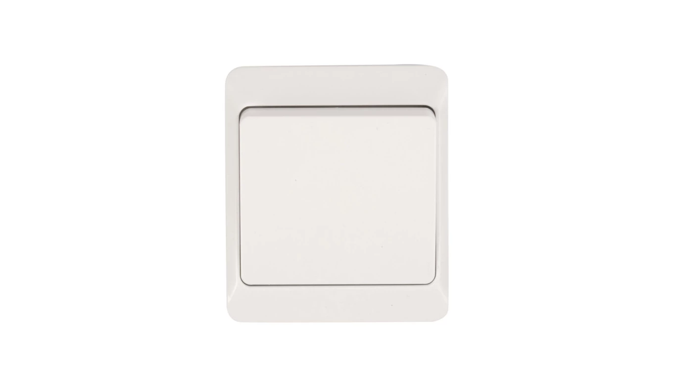 Łącznik 1-biegowy schodowy, natynkowy, IP44, biały, HERMES o numerze katalogowym 0331-02 w kategorii Łączniki natynkowe schodowe, Łączniki schodowe. Produkt wyprodukowany przez markę ELEKTRO-PLAST NASIELSK, seria HERMES.