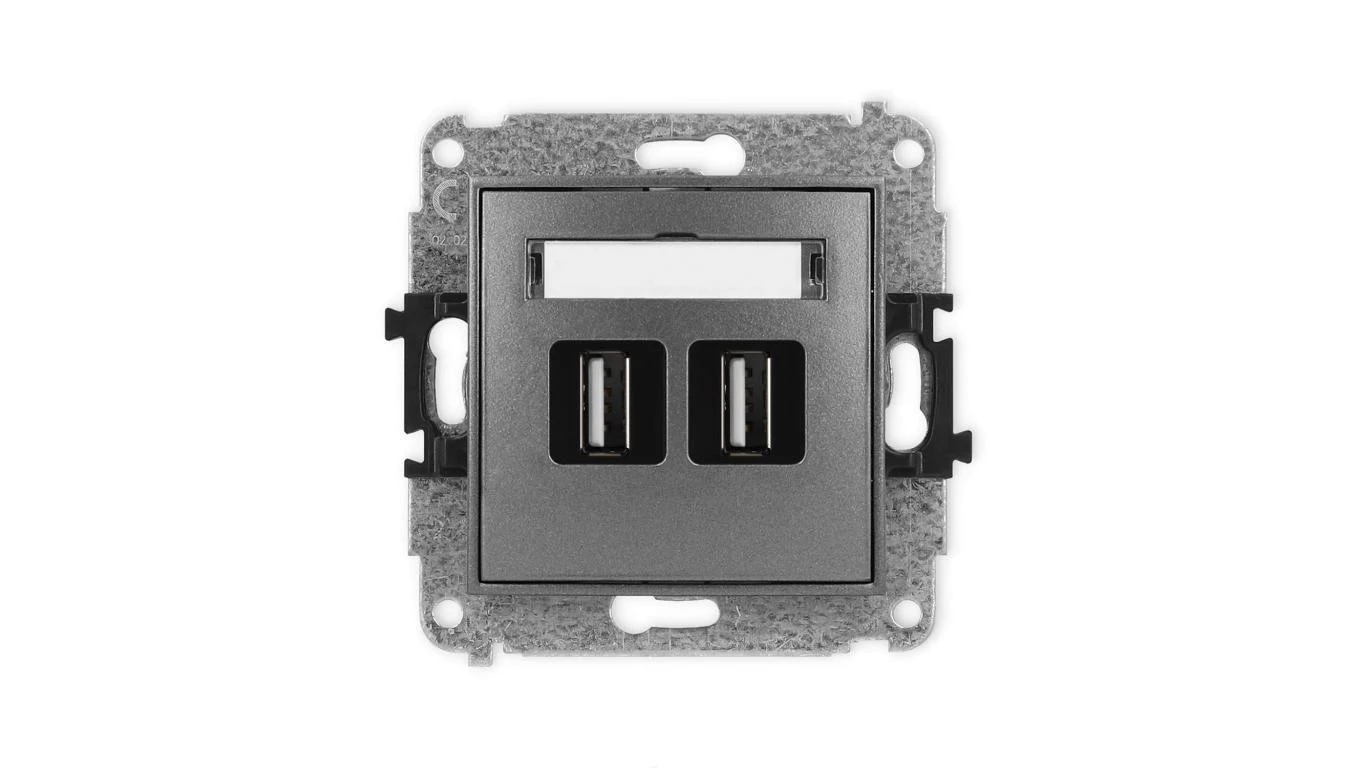 ICON Mechanizm gniazda podwójnego 2xUSB A-A 2.0 grafitowy 11IGUSB-2