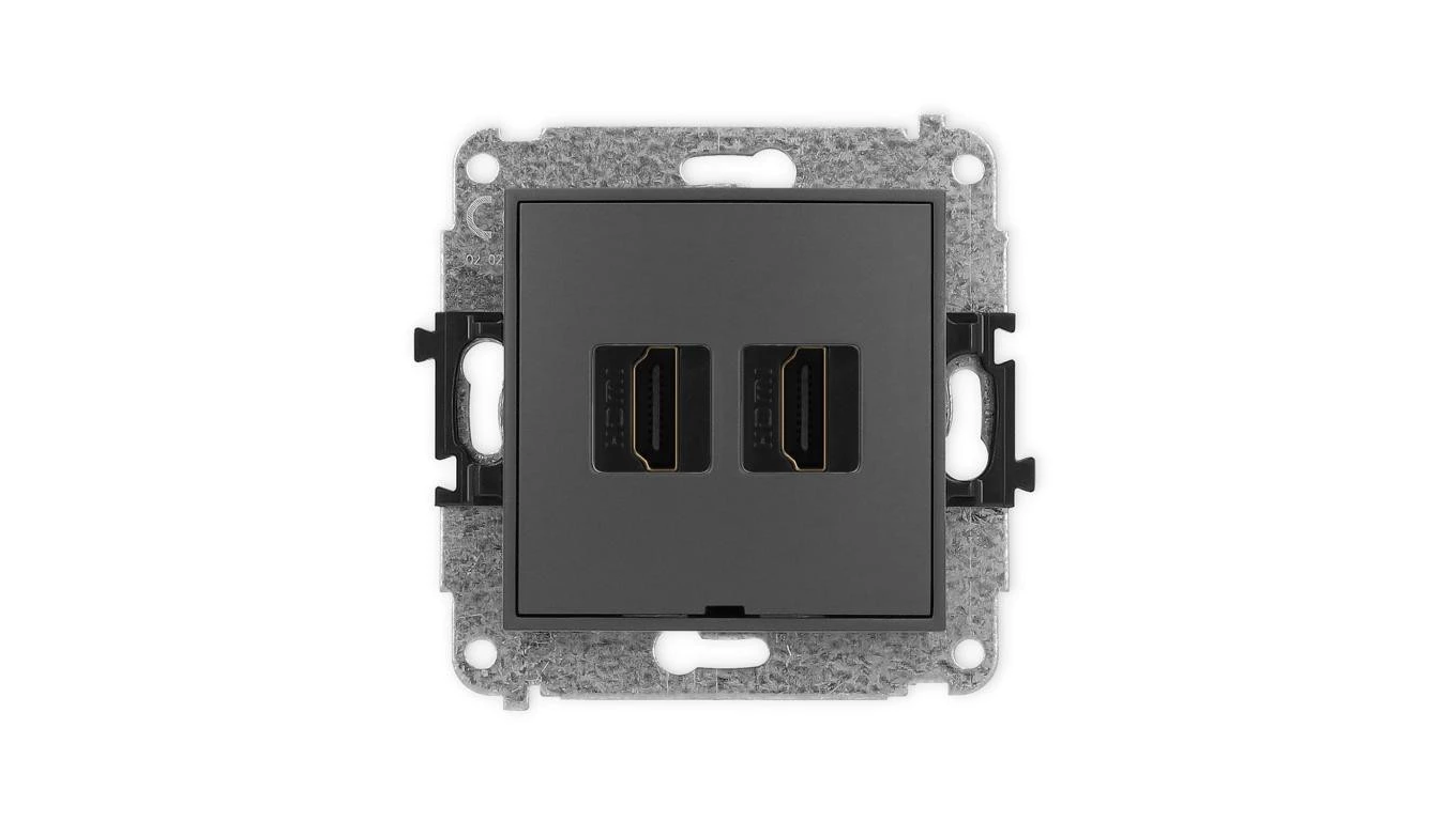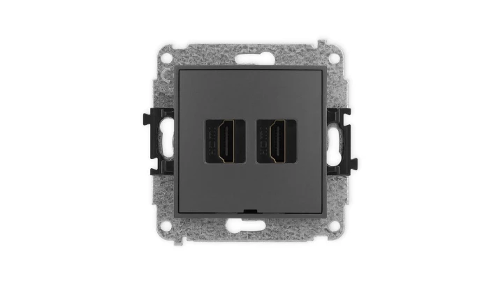 ICON Mechanizm gniazda podwójnego HDMI 2.1, 8K, bez pola opisowego grafitowy mat 28IHDMIBO-6