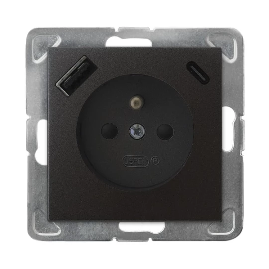 IMPRESJA Gniazdo pojedyncze z uziemieniem z przesłonami torów prądowych, z ładowarką USB A+C antracyt GP-1YZPUSBAC/m/50