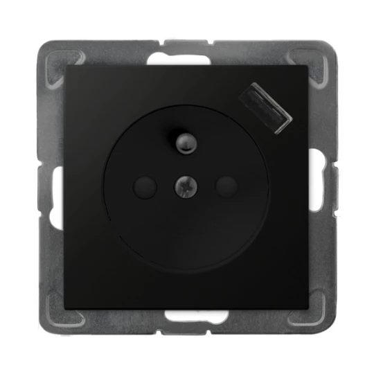 IMPRESJA MODUŁ CZARNY METALIK GNIAZDO 1X Z/U Z PRZESŁONAMI ZACISKI SPRĘŻYNOWE + ŁADOWARKA USB