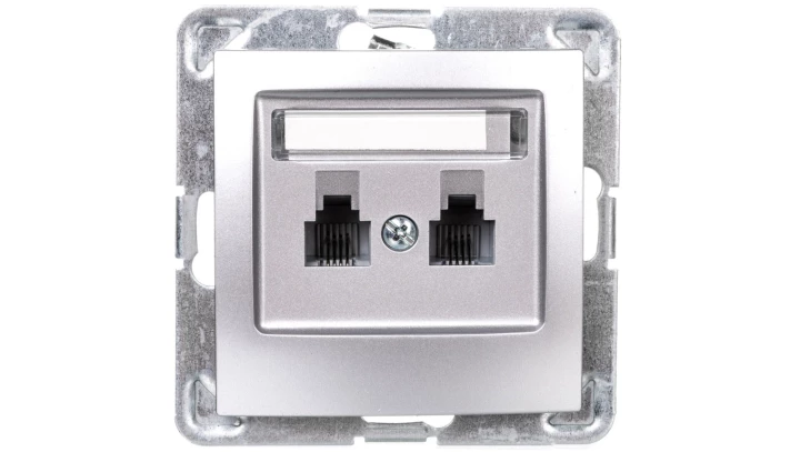 IMPRESJA MODUŁ SREBRNY GNIAZDO TELEFONICZNE 2X UAE 6 RÓWNOLEGŁE PROSTE