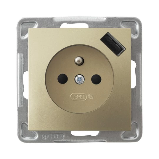 IMPRESJA MODUŁ ZŁOTY METALIK GNIAZDO 1X Z/U Z PRZESŁONAMI ZACISKI SPRĘŻYNOWE+ ŁADOWARKA USB 16A 250V