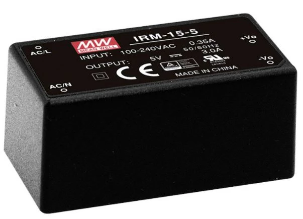 Moduł AC/DC 15W 5V 3A IRM-15-5 o numerze katalogowym IRM-15-5 w kategorii Przetwornice AC/DC i DC/DC, Zasilacze. Produkt wyprodukowany przez markę MEAN WELL.