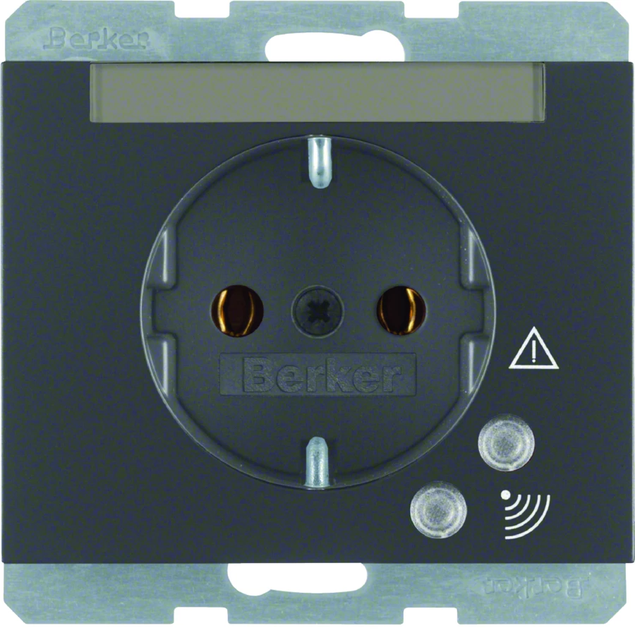 K.1 Gniazdo SCHUKO z ochroną przepięciową i polem opisowym antracyt mat 41527106