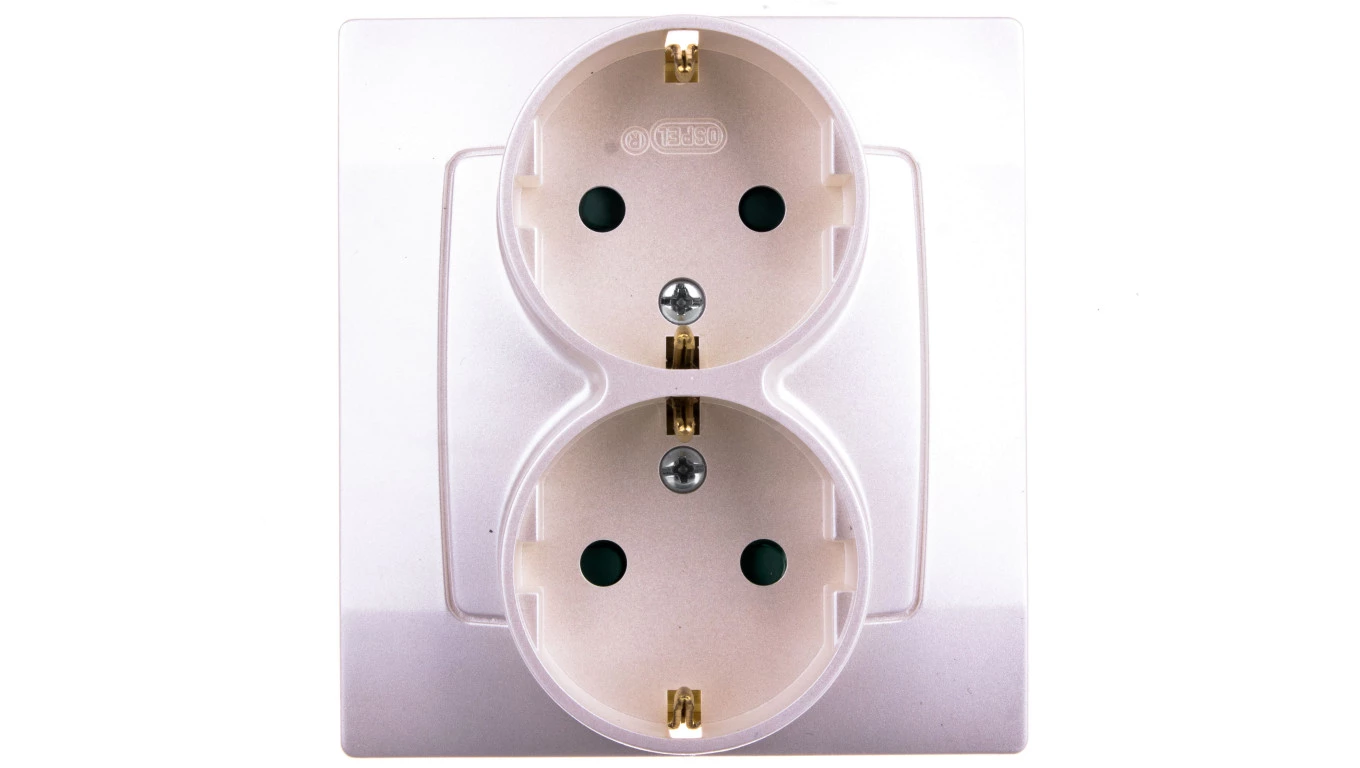 KARO Gniazdo podwójne z/u Schuko z przesłonami ecru perłowy GP-2SSP/42