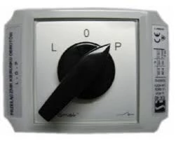 Łącznik krzywkowy 40A, przełącznik zmiany kierunku obrotów L-0-P, w obudowie OB3, o numerze katalogowym ŁK40-3.8368\OB3 w kategorii Wyłączniki i rozłączniki obrotowe, Wyłączniki, rozłączniki. Produkt wyprodukowany przez markę SPAMEL.