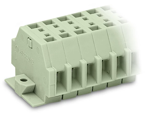 listwa zaciskowa 2-przewodowa; bez przycisków; do zastosowań Ex e II; z uchwytami montażowymi; 12-bieg.; do mocowania śrubowego i podobnego typu; otwór montażowy Ø 3,2 mm; 4 mm²; CAGE CLAMP®; 4,00 mm²; jasnoszary