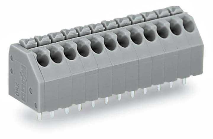 Listwa zaciskowa do płytek drukowanych 2-torowa 1 pin/biegun z przyciskami i otworem pomiarowym do 1,3mm szara 250-102 /140szt./