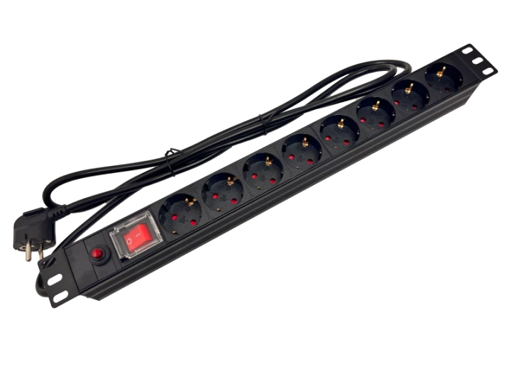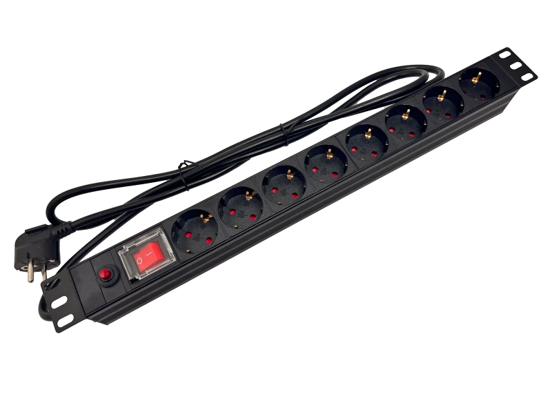 Listwa zasilająca rack 19 cali PDU gniazdo 9 x CEE 7/3 wtyk CEE 7/7 z wyłącznikiem i zabezpieczeniem