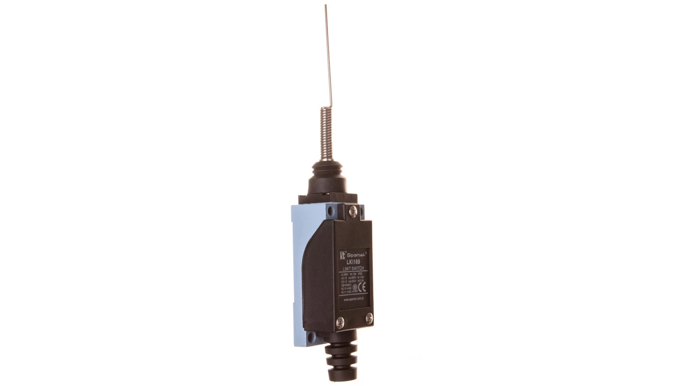 Wyłącznik krańcowy (metal / tworzywo) dzwignia sprężynowa o numerze katalogowym LK\169 w kategorii Krańcówki, Czujniki mechaniczne. Produkt wyprodukowany przez markę SPAMEL, seria LK.