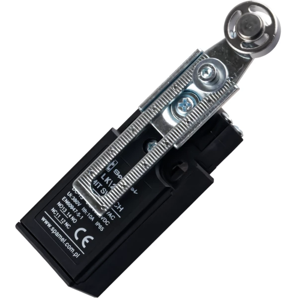 Wyłącznik krańcowy (tworzywo) dźwignia z rolką o numerze katalogowym LK\208 w kategorii Krańcówki, Czujniki mechaniczne. Produkt wyprodukowany przez markę SPAMEL, seria LK.