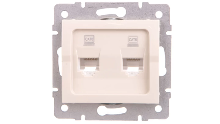 LOGI Gniazdo komputerowe podwójne niezależne (2x RJ45Cat 6 Jack) Kremowy 021420003 25170
