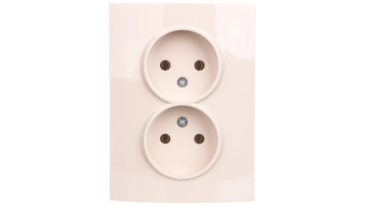 LOGI Gniazdo podwójne bez uziemienia kompletne śrubowy Kremowy 16A 250V 021280103 25155