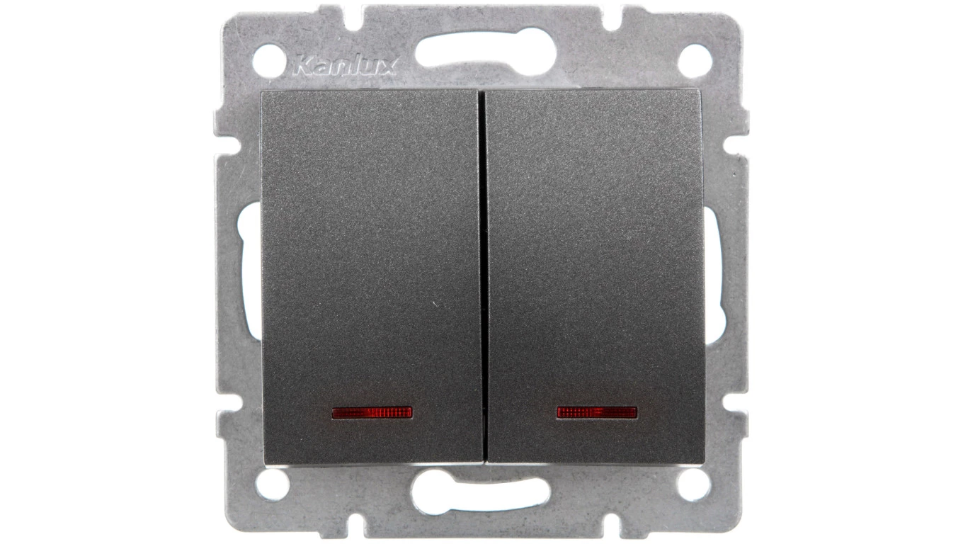 LOGI Łącznik zwierny podwójny LED śrubowy 10AX 250V grafit 021023141 25248
