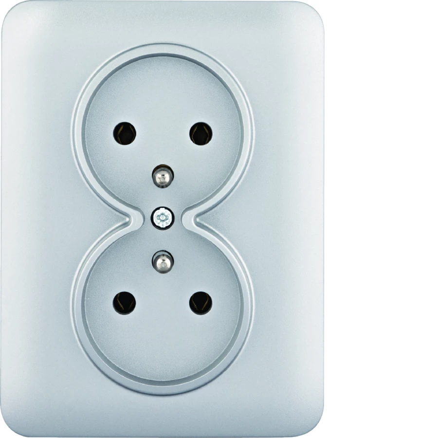 LUMINA Gniazdo zasilające z uziemieniem podwójne kompletne, 16A/250VAC, srebrny o numerze katalogowym WL1222 w kategorii Gniazda teleinformacyjne, multimedialne, Łączniki i gniazda instalacyjne. Produkt wyprodukowany przez markę HAGER, seria LUMINA.