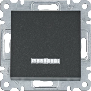 LUMINA Łącznik zwierny z podświetleniem, czarny o numerze katalogowym WL0413 w kategorii Przyciski podtynkowe jednobiegunowe, Przyciski jednobiegunowe. Produkt wyprodukowany przez markę HAGER, seria LUMINA.