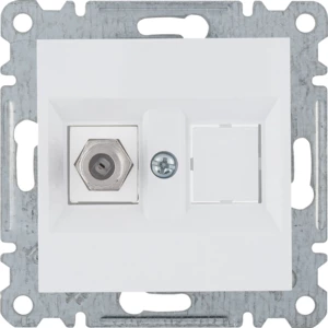 LUMINA Złącze pojedyncze typu F, biały o numerze katalogowym WL3250 w kategorii Gniazda teleinformacyjne, multimedialne, Łączniki i gniazda instalacyjne. Produkt wyprodukowany przez markę HAGER, seria LUMINA.