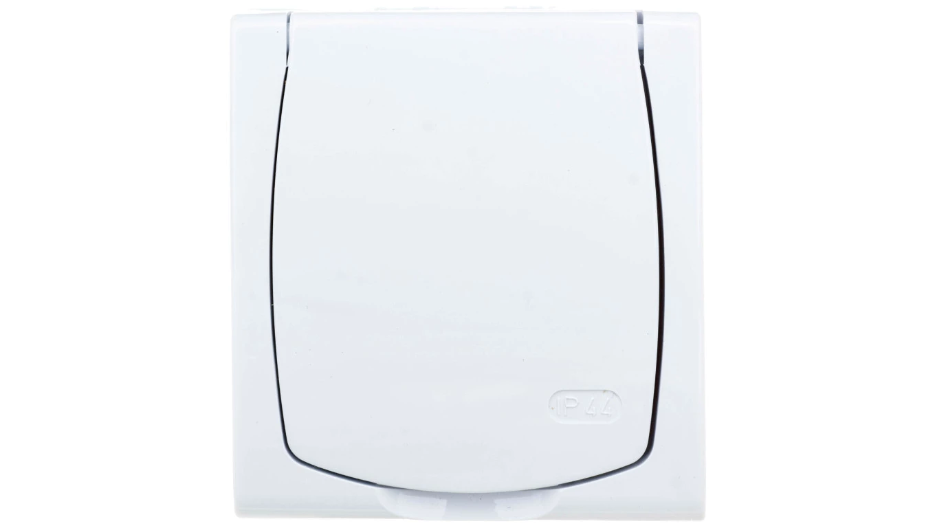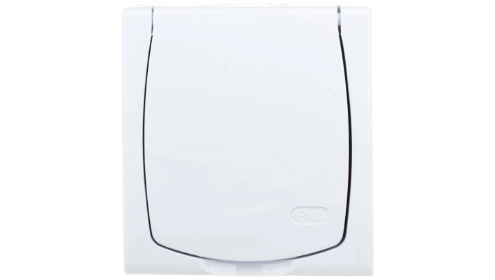 Simon Aquarius Gniazdo hermetyczne pojedyncze z/u IP54 z przesłoną torów i klapką pełną białe AQGZ1z/11