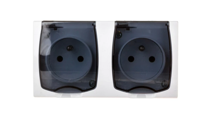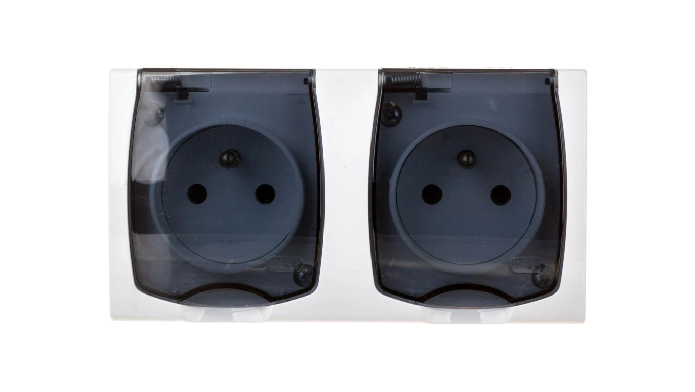 HYDRO Gniazdo hermetyczne podwójne z/u IP44 z klapką dymną białe 121436