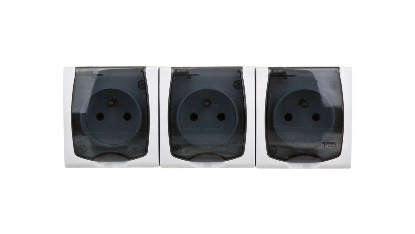 Simon Aquarius Gniazdo hermetyczne potrójne z/u IP54 z przesłona torów i klapką transparentną AQGZ1-3Z/11