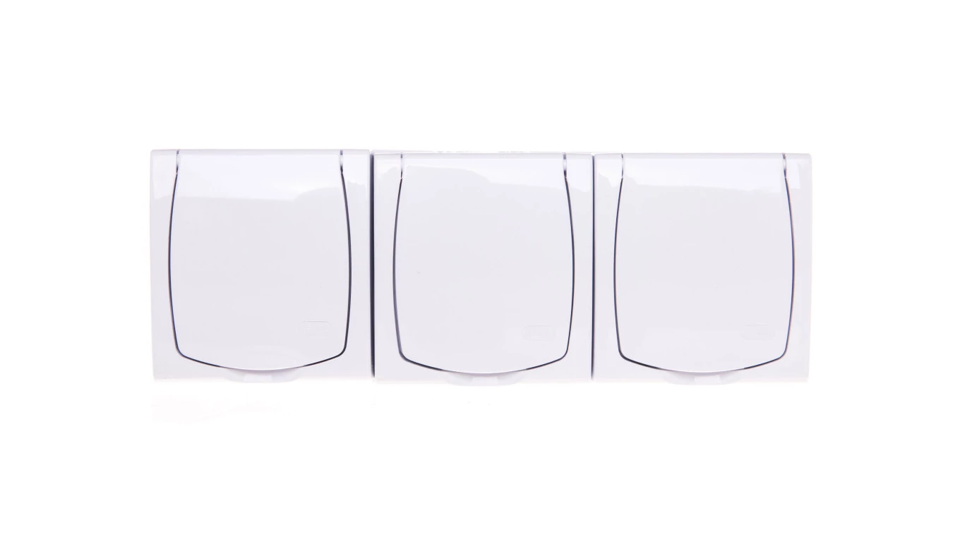 MADERA Gniazdo hermetyczne potrójne z/u IP44 z przesłonami klapka biała GNH-3NZP/00/w