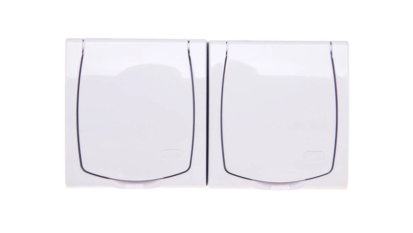 HYDRO Gniazdo hermetyczne podwójne z/u IP44 z klapką białe 120436
