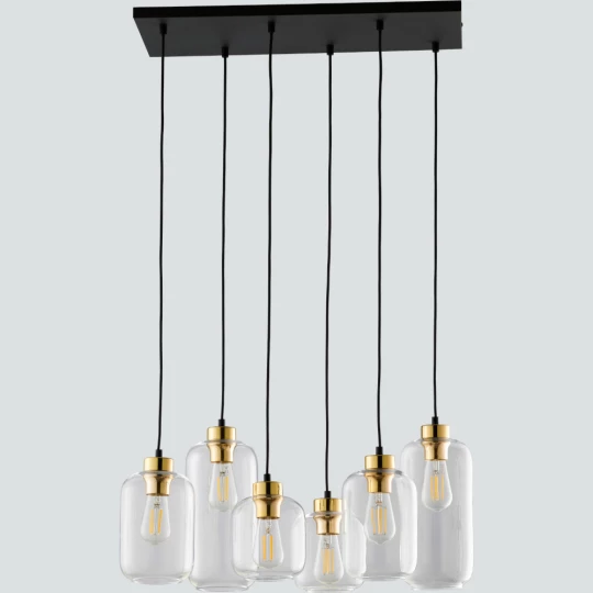 MARCO CZARNY ZŁOTY TRANSPARENTNY OPRAWA WISZĄCA 6 E27/ 15W STAL LAKIEROWANA TWORZYWO PRZEWÓD/ SZKŁO