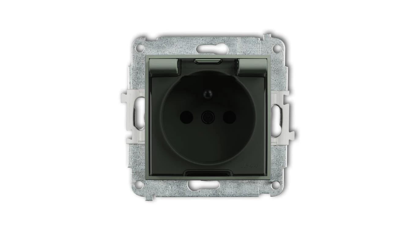 MINI Mechanizm gniazda bryzgoszczelnego z uziemieniem 2P+Z (klapka dymna, przesłony torów prądowych) szałwiowy 61MGPB-1zdp