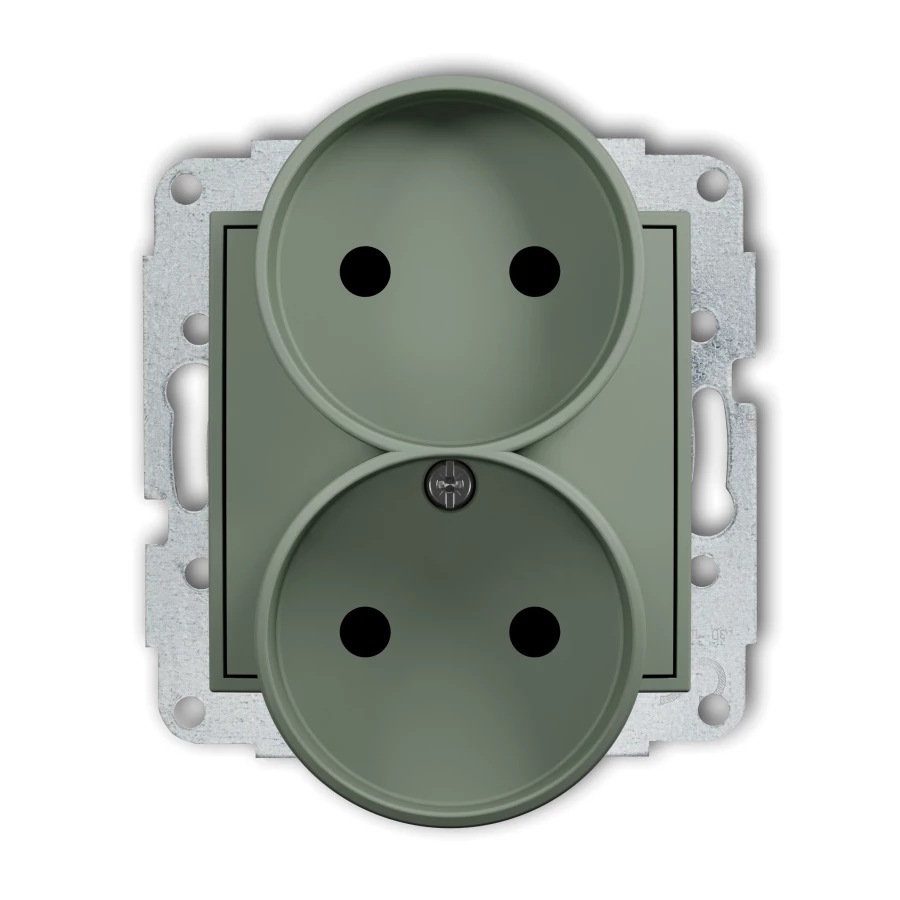 MINI Mechanizm gniazda podwójnego do ramki bez uziemienia 2x2P (przesłony torów prądowych) szałwiowy 61MGPR-2p