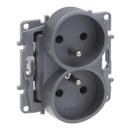 NILOE SELECTION MODUŁ STAL GNIAZDO 2X Z/U Z PRZESŁONAMI ZACISKI ŚRUBOWE 16A 250V