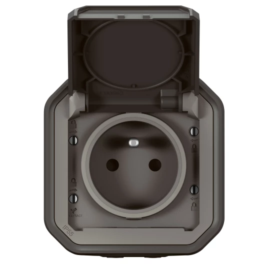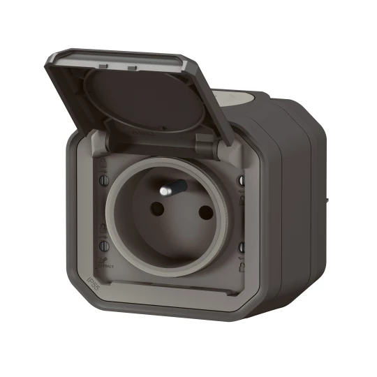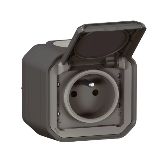 Gniazdo pojedyncze z uziemieniem 2P+Z, zaciski automatyczne, komplet natynkowy 16A-250V~- antracyt, NOWE PLEXO 55 o numerze katalogowym   069791L w kategorii Gniazda instalacyjne>Gniazda natynkowe. Produkt wyprodukowany przez markę LEGRAND, seria NOWE PLEXO55.