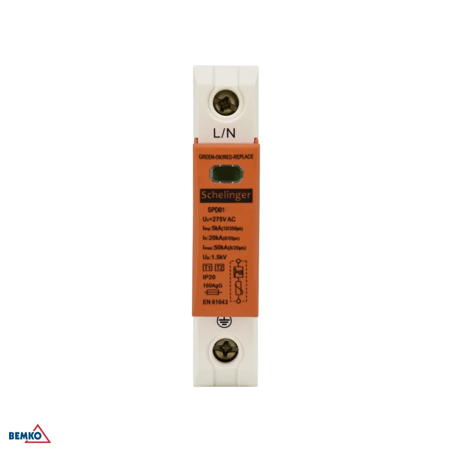 Ogranicznik przepięć 1P 5kA(10/350) KLASA T1+T2 (B+C) Schelinger A51-SPD01-1P-B+C