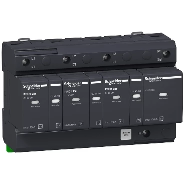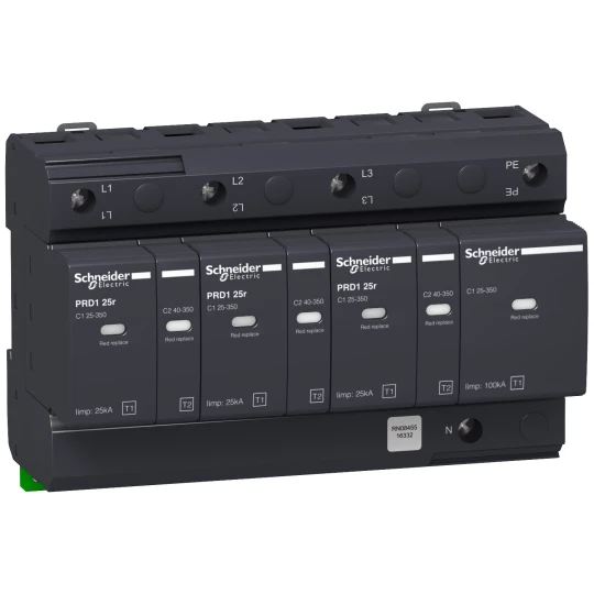 Ogranicznik przepięć PRD125r-T12-3N 3+1-biegunowy Typ1+Typ2 25 kA ze stykiem o numerze katalogowym 16332 w kategorii Ograniczniki przepięć typ 1+2, Ograniczniki przepięć. Produkt wyprodukowany przez markę SCHNEIDER ELECTRIC, seria ACTI 9.