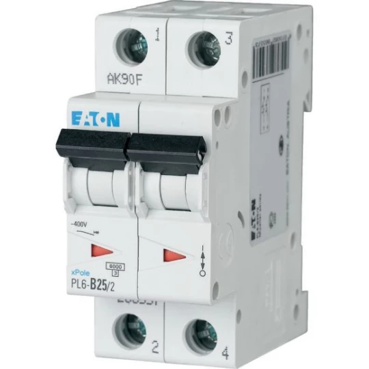 Wyłącznik nadprądowy 6kA PL6-C25/2 o numerze katalogowym 286569 w kategorii Wyłączniki nadprądowe 6kA, Wyłączniki nadprądowe. Produkt wyprodukowany przez markę EATON, seria PL6.