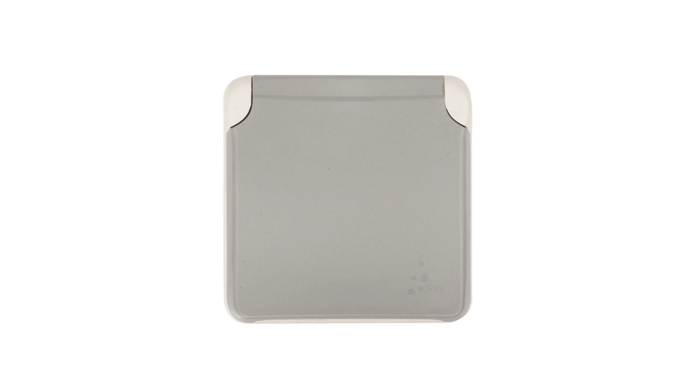 PLEXO55 MECHANIZM SZARY GNIAZDO 1X Z/U Z KLAPKĄ Z PRZESŁONAMI IP55 IK07 ZACISKI ŚRUBOWE 16A 250V
