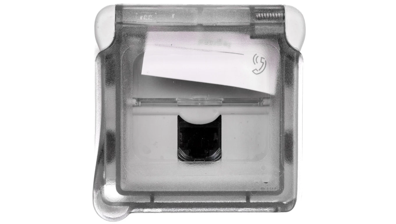 Simon 82 Pokrywa gniazda komputerowego pojedynczego RJ45 płaska z adapterem o przesłoną biała 82005-30