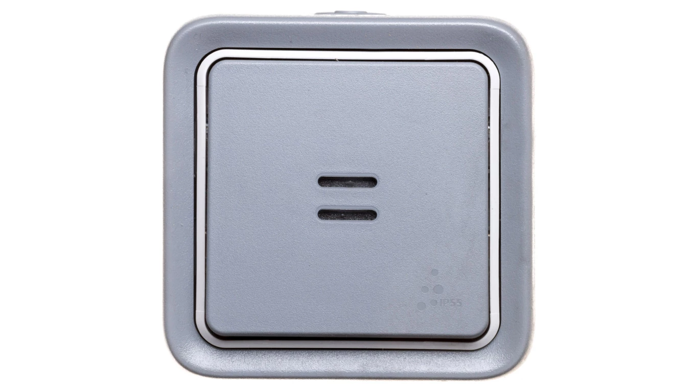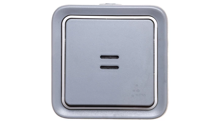 PLEXO55 SZARY PRZYCISK NT 1X PODŚWIETLANY IP55 IK07 ZACISKI SPRĘŻYNOWE 10A 250V