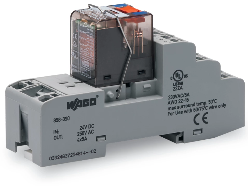 Podstawka z wtykanym przekaźnikiem przemysłowym 24V DC 4p 858-390 /5szt./