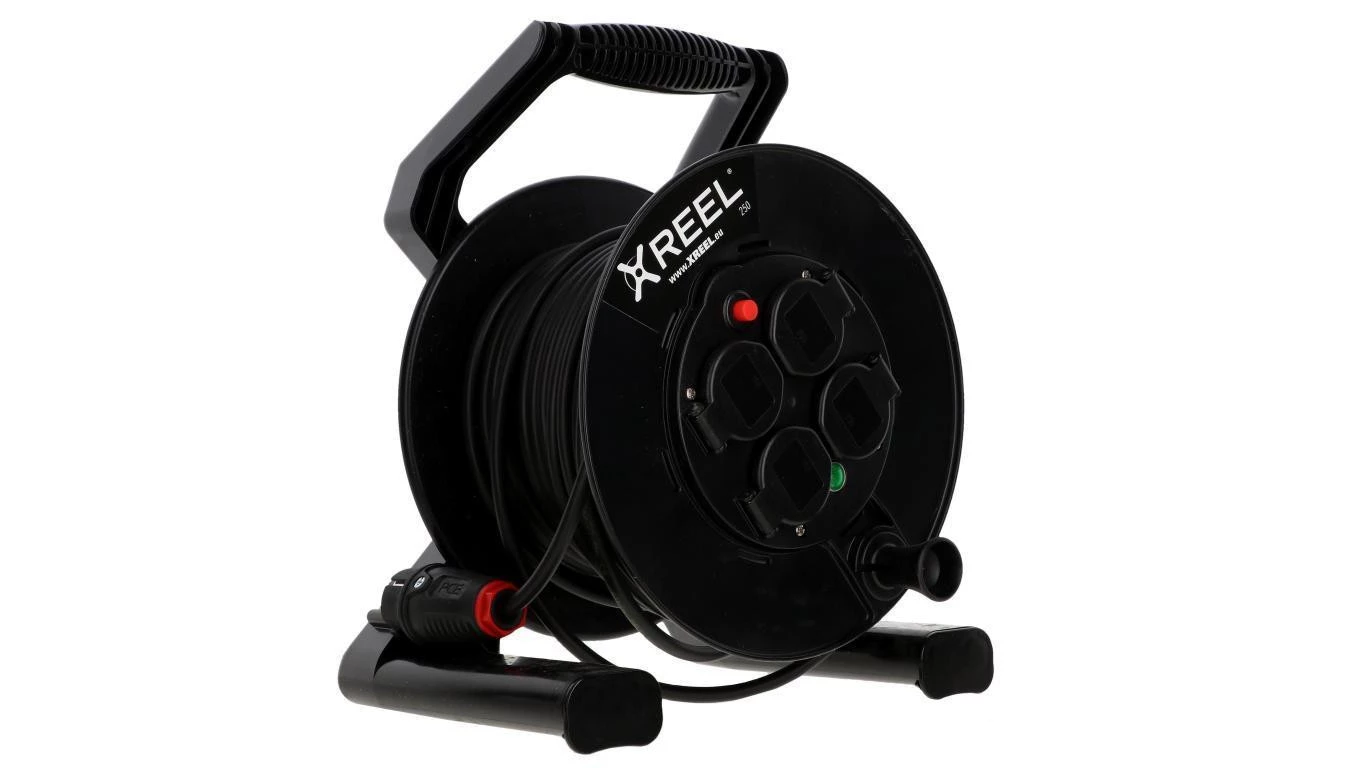 XREEL PRZEDŁUŻACZ ZWIJANY 40 MB 1-FAZ WYJŚCIE 4XGS Z TER. H05RR-F 3X1,5 WTYCZKA GUMOWA 16A IP20