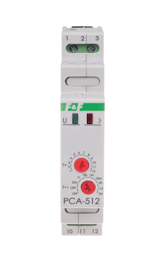 Przekaźnik czasowy PCA-512 jednofunkcyjny - awersyjny (opóźn. rozłącz.), styk: 1P , U=230V, I=10A, 1 moduł o numerze katalogowym PCA-512 w kategorii Przekaźniki czasowe, Przekaźniki. Produkt wyprodukowany przez markę F&F.