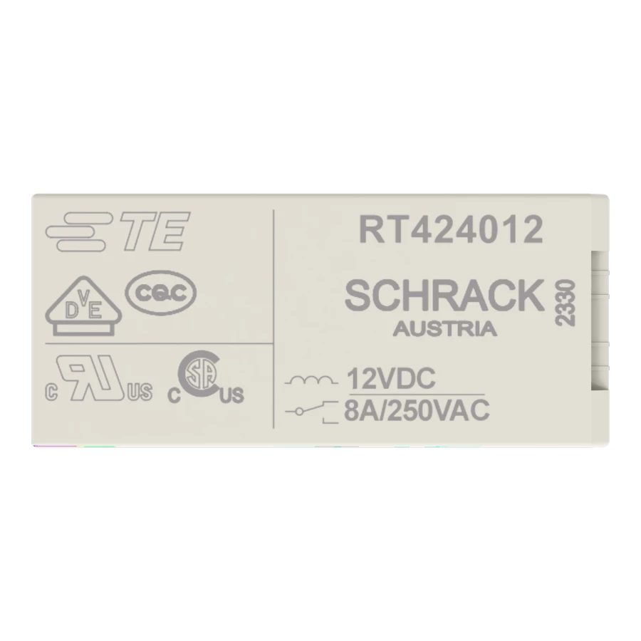 przekaźnik bazowy; znamionowe napięcie wejściowe 12 V DC; 2 x zestyk przełączny; maksymalny prąd długotrwały 8 A; szerokość 13 mm; wysokość 15 mm