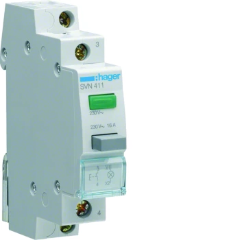 Przycisk 16A, 1Z, z zieloną lampką sygnaliz.230V AC o numerze katalogowym SVN411 w kategorii Przyciski i przełączniki sterownicze, Przyciski i przełączniki sterownicze. Produkt wyprodukowany przez markę HAGER.