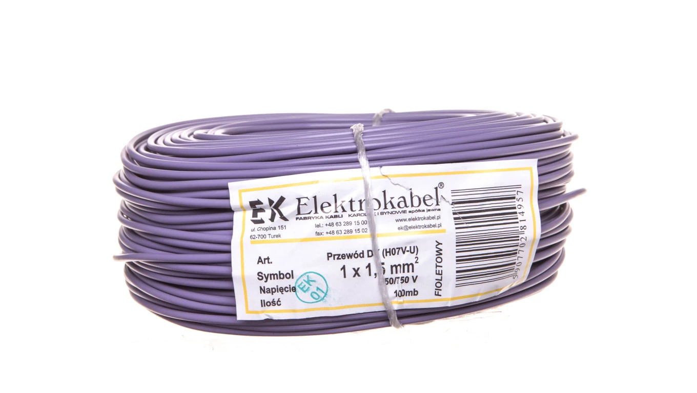 Przewód instalacyjny H07V-U (DY) 1,5 fioletowy /100m/