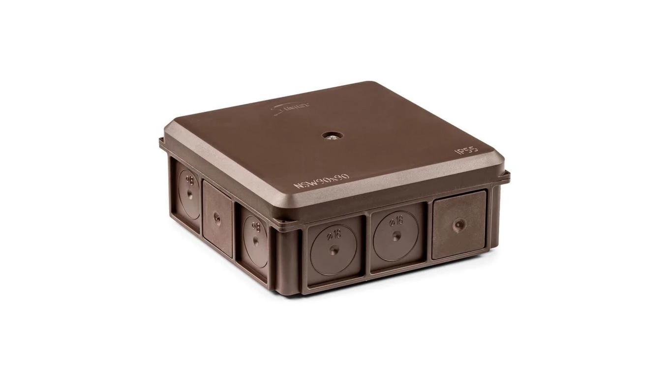 Puszka instalacyjna naścienna NSW90x90, 90X37X90 MM, IP55, brązowy o numerze katalogowym   35418715 w kategorii Puszki instalacyjne>Puszki natynkowe. Produkt wyprodukowany przez markę SIMET.