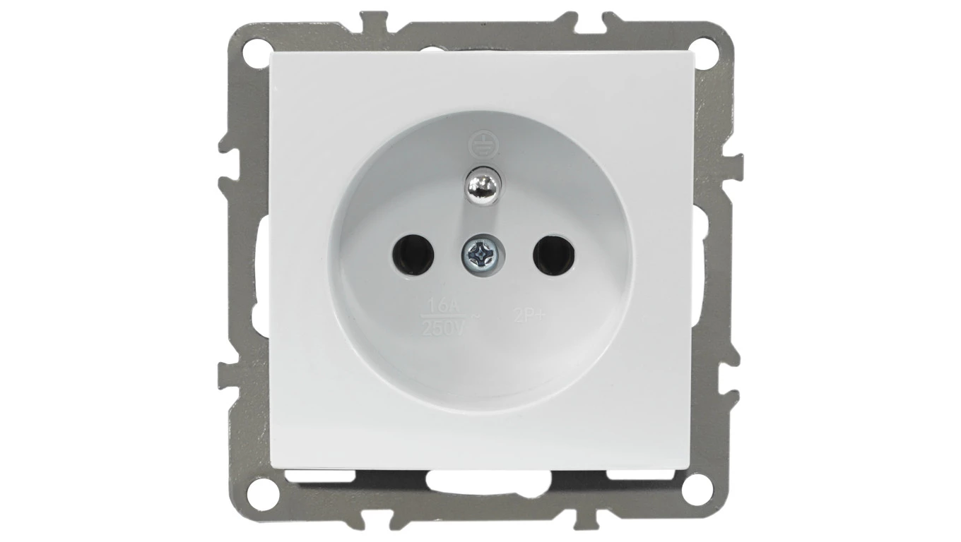 Simon 54 Gniazdo pojedyncze SCHUKO z/u 16A IP20 z przesłoną torów, szybkozłącza, białe DGSz1CZ.01/11
