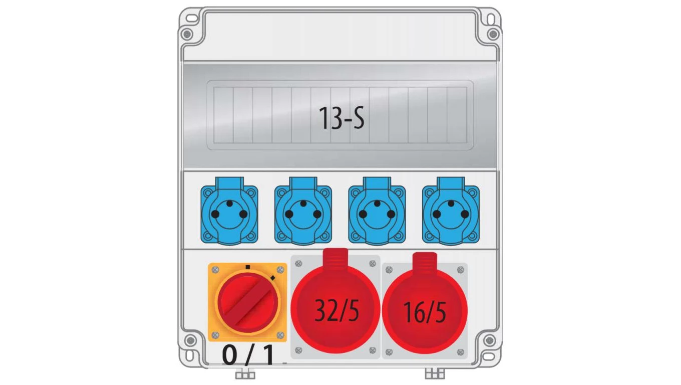 R-BOX LUX 320 ROZDZIELNIA BUDOWLANA 4X 250V 1X 32A/5P 1X 16A/5P 4X250V 0/1 IP44 PUSTE OKNO